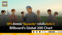 บันเทิง • ศิลปิน • เพลง BTS ส่งเพลง “Dynamite” กลับขึ้นอันดับ 1 Billboard’s Global 200 Chart 13 January 2021