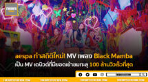 บันเทิง • ศิลปิน • เพลง aespa ทำสถิติใหม่! MV เพลง Black Mamba กลายเป็น MV เดบิวต์ที่มียอดเข้าชมทะลุ 100 ล้านวิวเร็วที่สุด 11 January 2021