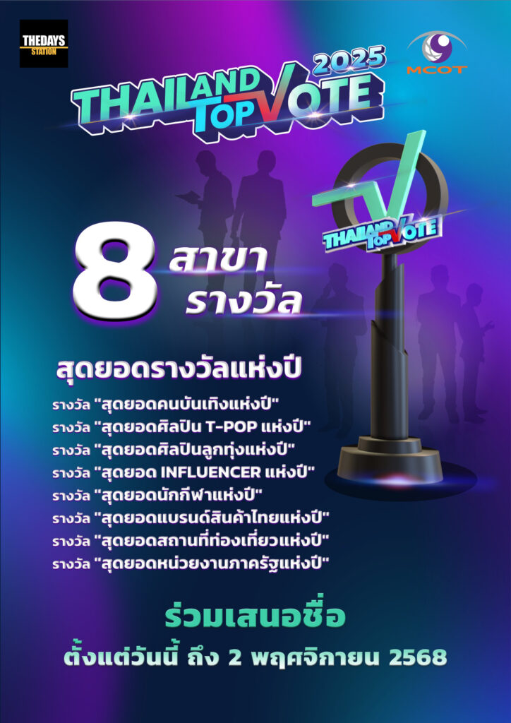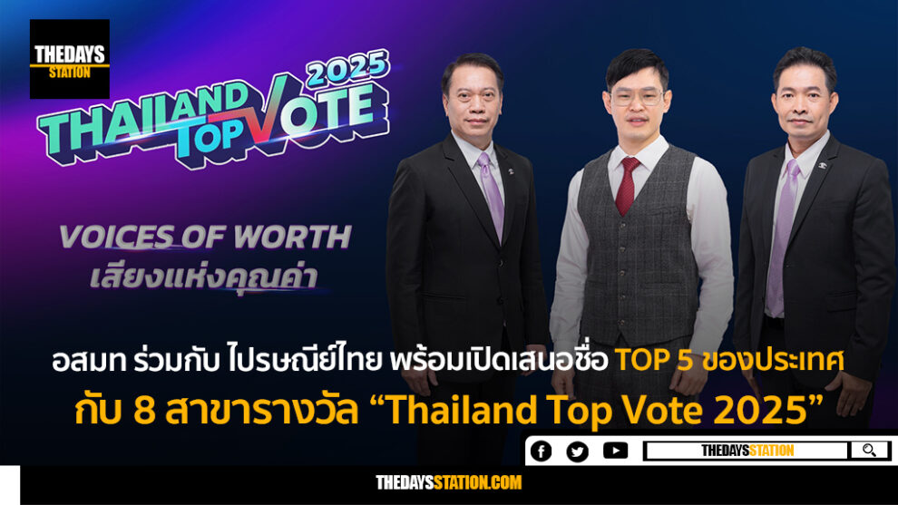 สาย SUPPORT ห้ามพลาดกับรางวัลที่สร้างความภาคภูมิใจ สร้างแรงบันดาลใจ พร้อมกำลังใจ ให้กับบุคคลและองค์กรในหลากหลายวงการ จากการร่วมมือระหว่าง บริษัท อสมท จำกัด (มหาชน) และ บริษัท ไปรษณีย์ไทย จำกัด “Thailand Top Vote 2025” VOICES OF WORTH เสียงแห่งคุณค่า กับ 8 รางวัลที่มาจากการโหวตของคนทั้งประเทศ โดยมีสถาบันบัณฑิตพัฒน บริหารศาสตร์ (นิด้า) สนับสนุนการทำโพล พร้อม 2 รางวัลเกียรติยศ สุดยอดนักบริหารแห่งปี จากภาครัฐและภาคเอกชน จากการคัดเลือกจากคณะกรรมการผู้ทรงคุณวุฒิ