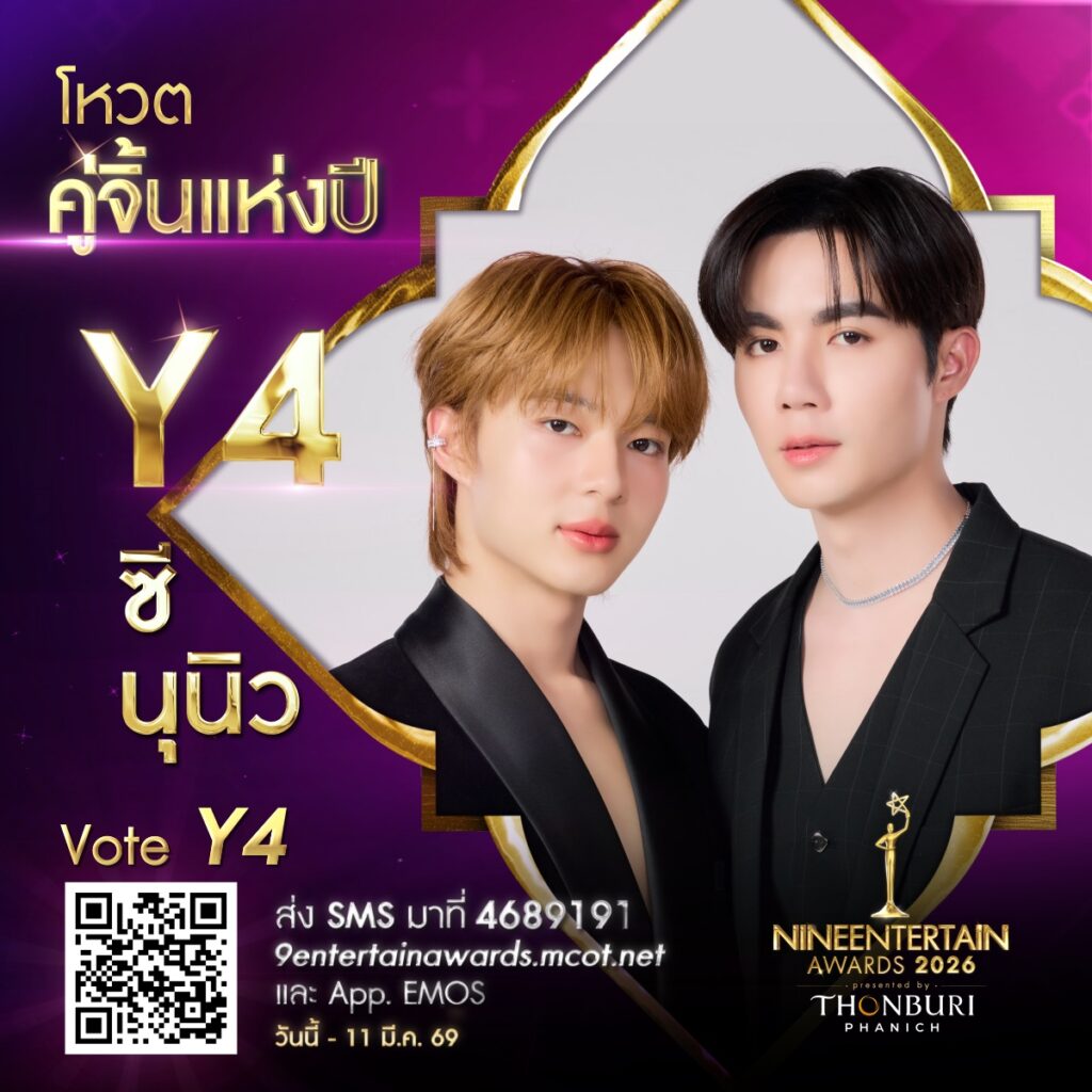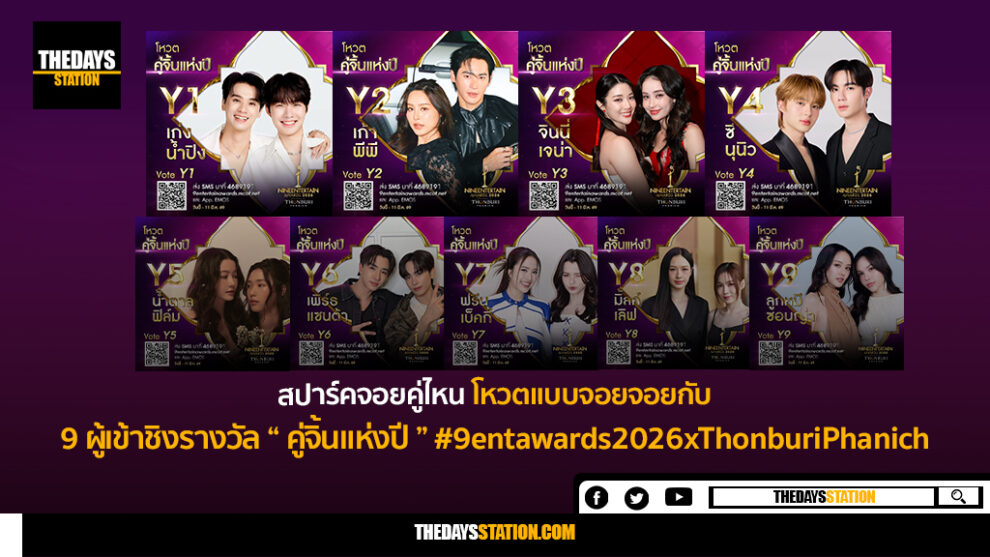 บริษัท อสมท จำกัด (มหาชน) ร่วมกับ บริษัท โซนิกซ์ ยูธ จำกัด โดย ก้อง-ปิยะ เศวตพิกุล จัดงานประกาศรางวัล “ไนน์เอ็นฯอวอร์ด 2026 presented by Thonburi Phanich” ล่าสุดพร้อมเปิดโหวต ผู้เข้าชิงรางวัล “คู่จิ้นแห่งปี” #9entertainawards2026 #คู่จิ้นแห่งปี